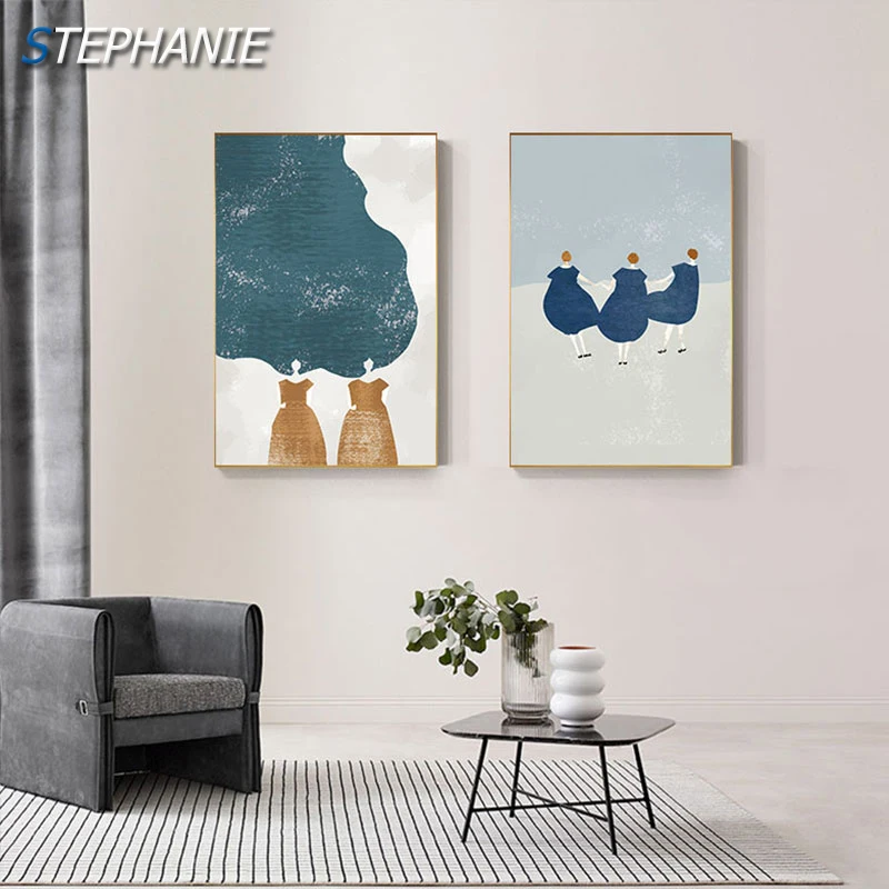 Abstrait jaune robe vert cheveux toile peinture moderne bleu vert affiche impression mur photo pour salon nordique décoration | AliExpress